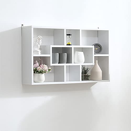 Homcom Pensile Libreria da Parete Sospesa 8 Vani in 3 Diverse Dimensioni, Mensola da Muro Design Antiribaltamento Pannelli di Truciolare Bianco 85x14.5x47.5cm Capacità: 20kg