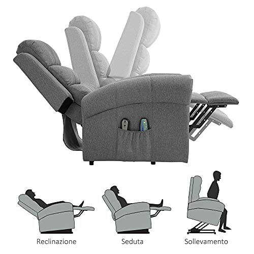HOMCOM Poltrona Massaggiante Reclinabile, Poltrona Alzapersona Elettrica Riscaldante in Tessuto 98x96x105cm