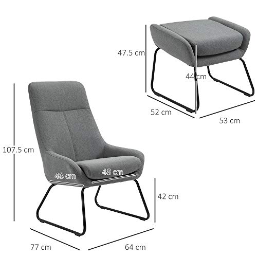 Homcom Set Poltrona con Pouf Poggiapiedi Imbottiti, Arredamento Casa e Ufficio in Metallo e Tessuto, Grigio