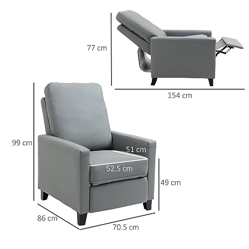 Homcom Poltrona Relax Imbottita, Poltrona Reclinabile Manualmente con Braccioli, in Similpelle Grigia, 70.5x86x99cm