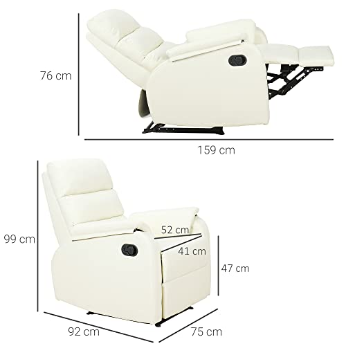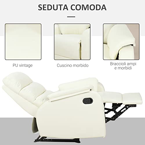 HOMCOM Poltrona Relax per Interni, Reclinabile Manualmente con Cuscino Imbottito, in Pelle PU e Acciaio, 75x82x99 cm, Crema