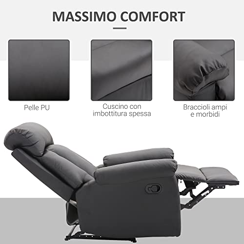 HOMCOM Poltrona Relax Reclinabile Imbottita Ergonomica con Poggiapiedi Pelle PU 80 x 97 x 107cm Nero