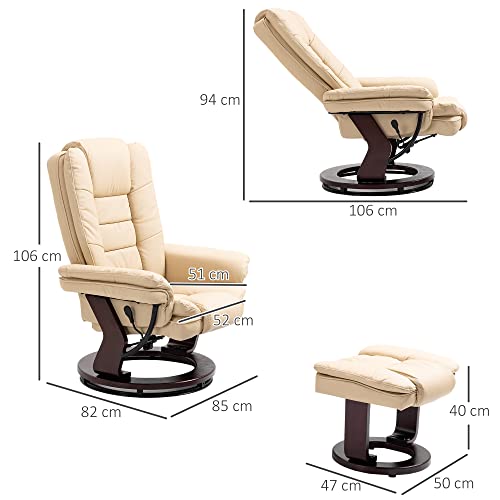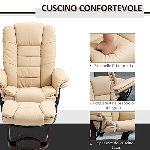 HOMCOM Set Poltrona Relax Reclinabile con Pouf Poggiapiedi, Girevole a 360° con Poggiatesta e Braccioli, Beige
