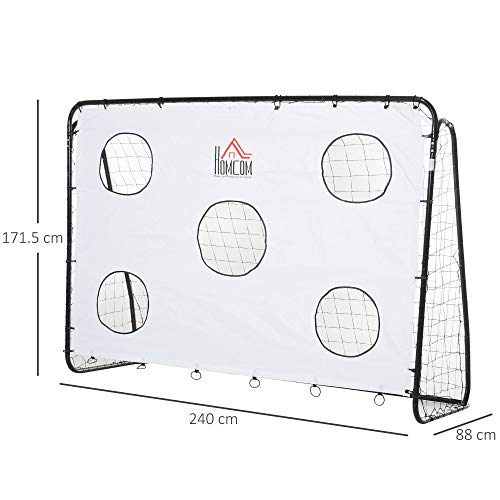 HOMCOM Porta da Calcio per Bambini e Adulti con Rete in PE, in Metallo e Oxford, Bianco e Nero, 240x88x171.5cm