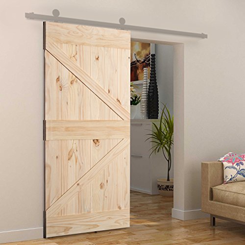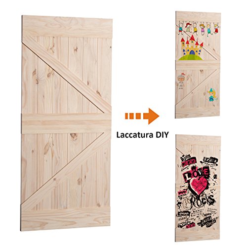 HOMCOM - Porta Scorrevole Barn Door in Legno di Pino Laccatura DIY, 213 x 96.5 x 3.5cm, Naturale