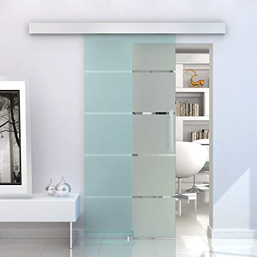HOMCOM Porta Scorrevole Interna in Vetro Smerigliato e Satinato con Binario B2 e Maniglia per Bagno Cucina Studio Vetro 205x 102.5x 0,8cm