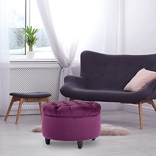 HOMCOM Pouf Contenitore in Velluto Viola per Camera, Design Vintage e Seduta in Stile Chesterfield Imbottita, 54x54x22cm