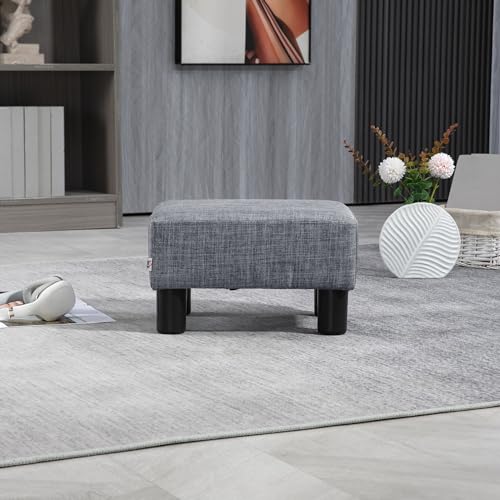 HOMCOM Pouf Poggiapiedi in Tessuto Sgabello Rettangolare Imbottito Piccolo per Salotto e Soggiorno, 40x30x24cm, Grigio