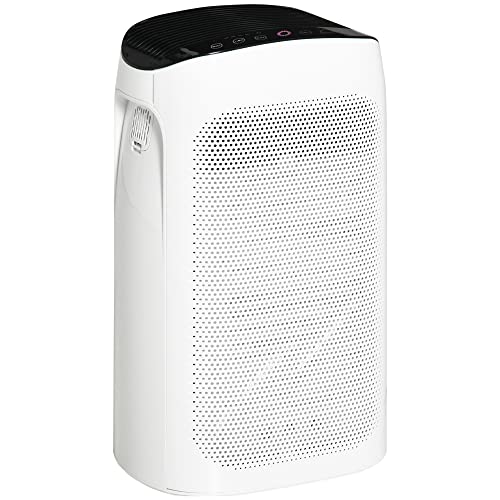 HOMCOM Purificatore d'Aria per Allergie con Filtro HEPA a Triplo Strato, 3 Velocità, Modalità Sonno, Timer, Area coperta 25-35m³, per Pollini, Odori, Fumo, Polvere