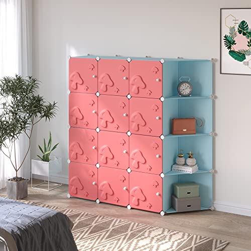 HOMCOM Scaffale Portaoggetti Salvaspazio a Fungo per Interni, Scaffale Componibile a 16 Cubi in Plastica PP e Acciaio, 145x47x145 cm, Rosa e Blu