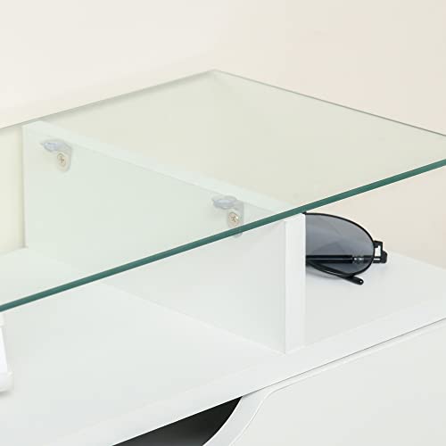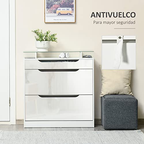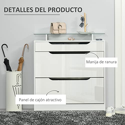Homcom Scarpiera Moderna con 2 Cassetti per 16 Scarpe, Scarpiera a Ribalta con Mensola Regolabile e Ripiano in Vetro, 89x23x96cm, Bianco Lucido