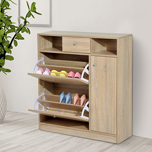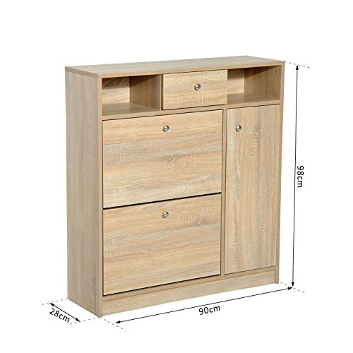 Homcom Scarpiera Salvaspazio in Legno Mobile Porta Scarpe Multiuso 90 x 28 x 98cm