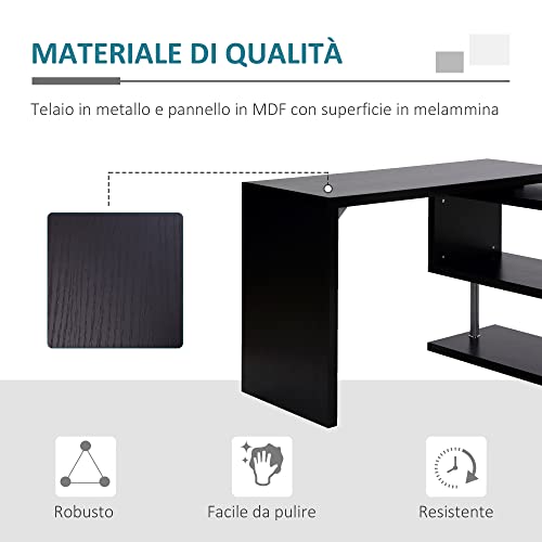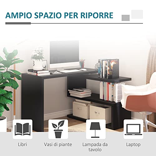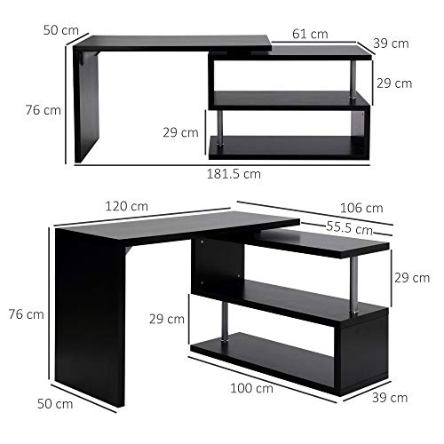 HOMCOM Scrivania Angolare per Computer con Scaffali, Tavolo da Pranzo in Legno 120 x 106 x 75cm Nero