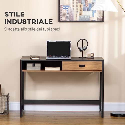 HOMCOM Scrivania per Camera e Ufficio con Ripiano e Cassetto in Legno e Acciaio Stile Industriale, 110x50x76cm, Noce e Nero