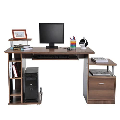 SCRIVANIA IN LEGNO: La grande scrivania offre spazio per computer, monitor, altoparlanti, stampante e molto altro. Ideale per casa e ufficio.