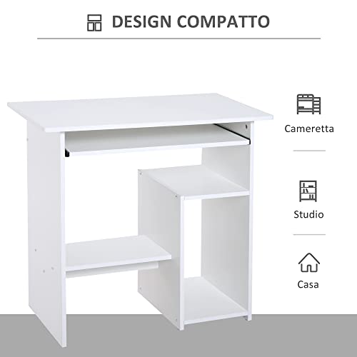 Homcom Scrivania per Computer Porta PC Moderna Salvaspazio, Scrivania da Uffcio con Ripiano per CPU e Mensola Tastiera Estraibile in Legno, 80x45x75cm, Bianco