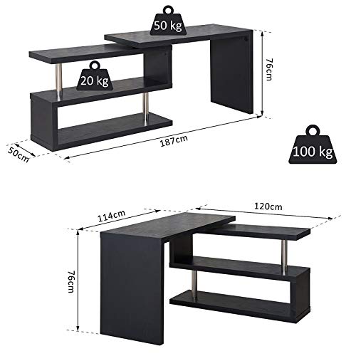Homcom Scrivania di Design per Computer con Ripiani Nero Opaco