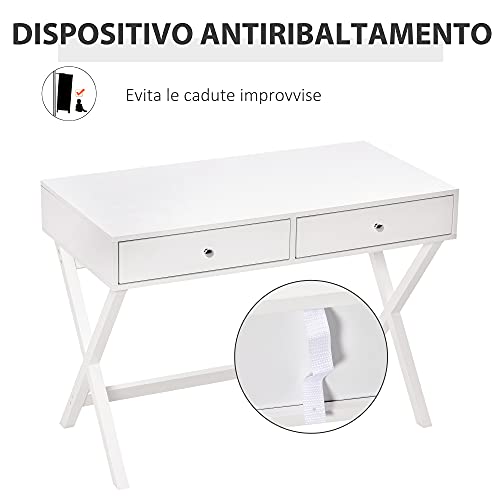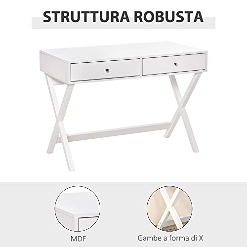 Homcom Scrivania Moderna per Camera Ufficio con 2 Cassetti, Arredamento Moderno Multifunzione in MDF, 106x55x75cm, Bianco