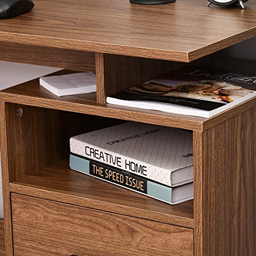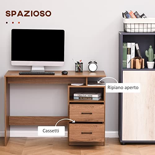 Homcom Scrivania Moderna in Legno con Cassetti per Ufficio Camera e Studio, Colore Legno Noce, 107x48x76.2cm