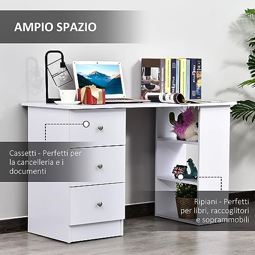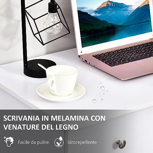 Homcom Scrivania Porta PC per Camera e Ufficio con Cassettiera e Ripiani Portaoggetti in Legno 120x49x72cm Bianco