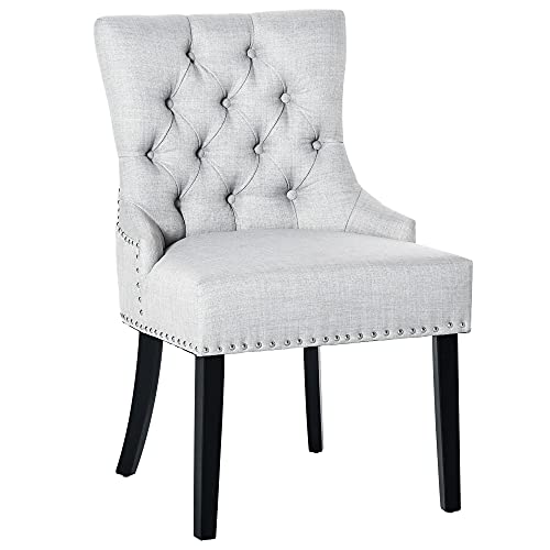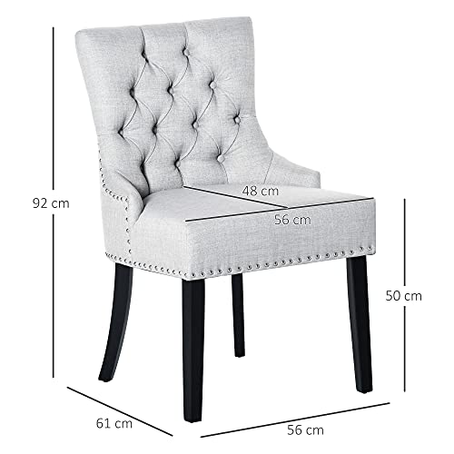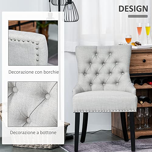Homcom Sedia da Pranzo con Rivestimento in Lino e Gambe in Legno Schienale Alto Trapuntato Anello un Dietro Schienale Grigio Chiaro 56x61x92cm