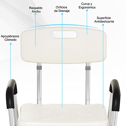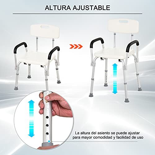 Homcom - Sedia Tipo Sgabello Ortopedico Regolabile per Doccia e Bagno, Colore Bianco, Portata 135 kg, 46,5 x 54,2 x 72,5 - 85 cm