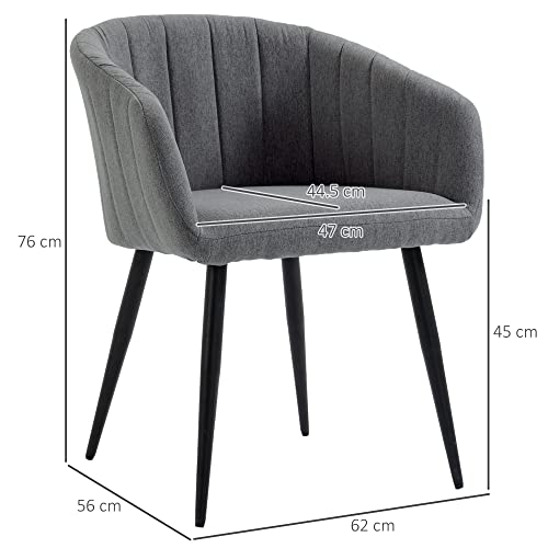 Homcom Set di 2 Sedie Imbottite Moderne con Rivestimento in Tessuto, Sedie per Soggiorno e Salotto con Gambe in Metallo, Grigio Scuro