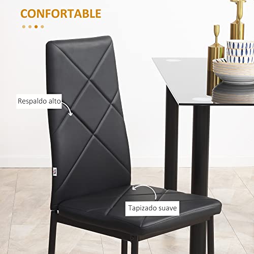HOMCOM Set di 4 Sedie da Pranzo con Schienale Alto, Sedie Moderne in Finta Pelle e Acciaio per Cucina e Salotto, 41x50x97cm, Nero