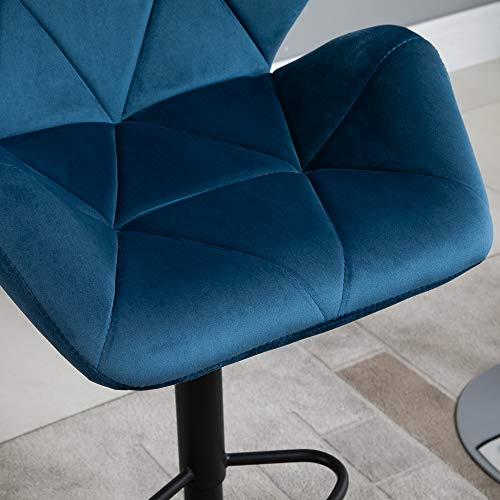 Homcom Set di 2 Sgabelli da Bar Alti in Velluto Imbottiti con Altezza Regolabile, Sgabelli Cucina Girevoli con Schienale e Poggiapiedi, 57x58x97-117cm Blu