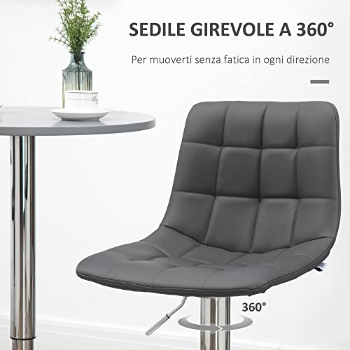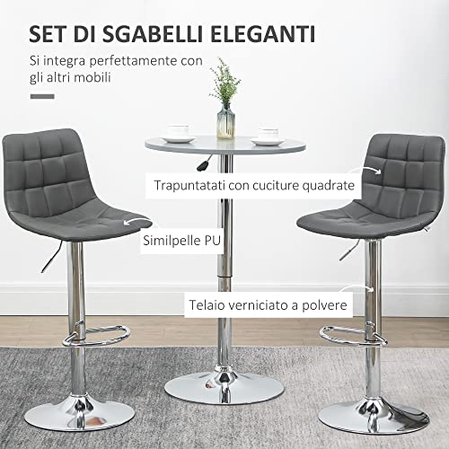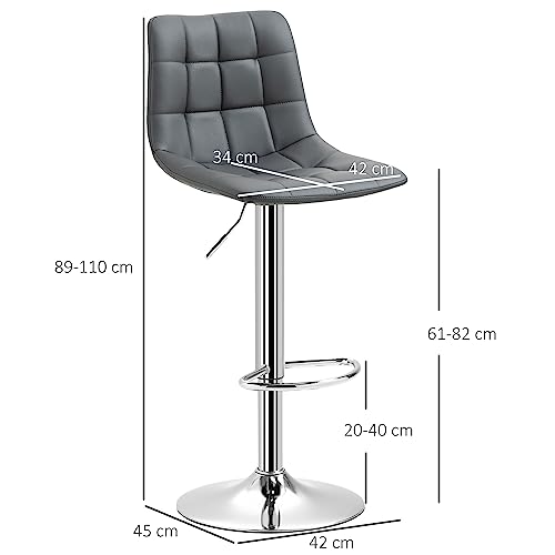 Homcom Set 2 Sgabelli da Bar in Similpelle con Schienale, Sgabelli da Cucina e Salotto Girevoli con Poggiapiedi, 42x45x89-110cm, Grigio