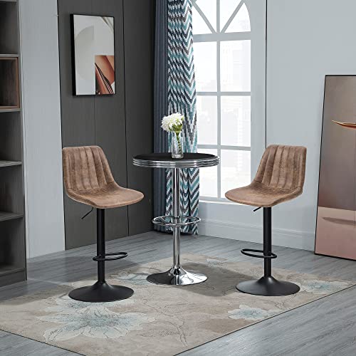 HOMCOM Set 2 Sgabelli da Bar in Stile Industriale con Schienale, Poggiapiedi e Altezza Regolabile, in Microfibra Marrone