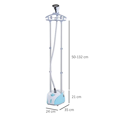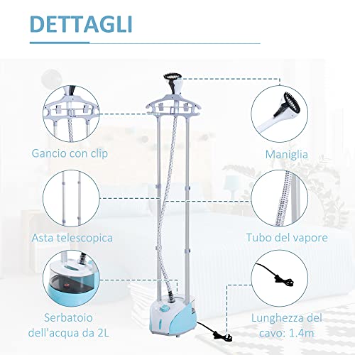 HOMCOM Stiratrice a Vapore, Ferro da Stiro Verticale da 2L, Potenza 1800W, Doppia Asta Telescopica Retrattile, 24x35x21cm, Azzurra
