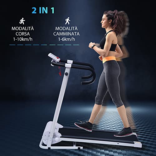 HOMCOM Tapis Roulant Elettrico Pieghevole per Allenamento a Casa o in Ufficio con Schermo LCD, 500W, Velocità Max 10km/h