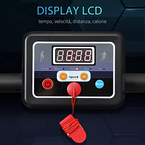 Homcom Tapis Roulant Elettrico e Pieghevole con Schermo LCD e 2 Ruote per Allenamento a Casa o in Ufficio, Motore 500W velocità 10km/h