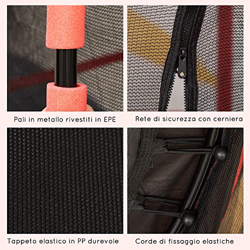 HOMCOM Tappeto Elastico per Bambini 3-6 Anni con Rete di Sicurezza, Trampolino con Pali Imbottiti per Casa e Giardino Φ163cm