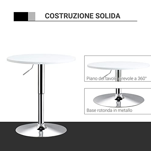 HOMCOM Tavolino da Bar Rotondo con Altezza Regolabile, Tavolino da Cucina o Salotto Moderno con Piano Girevole, Bianco