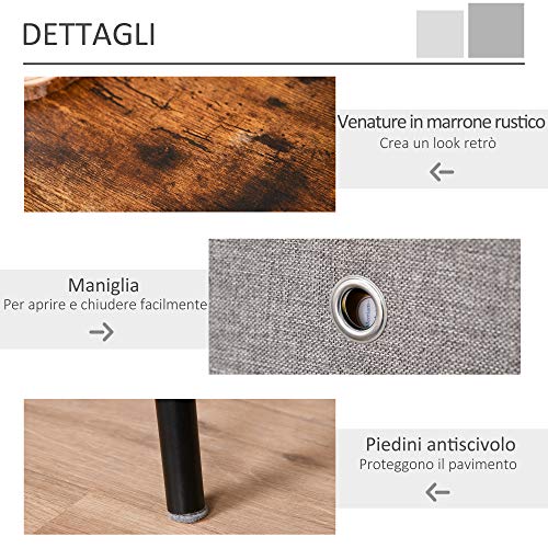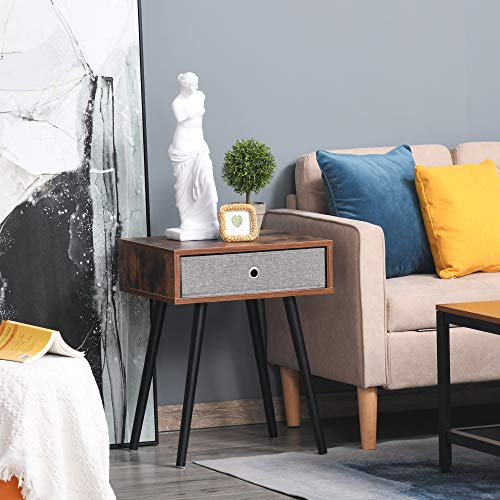 HOMCOM Tavolino da Salotto con Cassetto in Tessuto Pieghevole, Tavolo Vintage in Legno per Soggiorno e Camera, Marrone e Nero