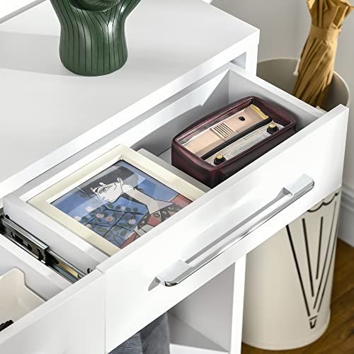 Homcom Tavolo Consolle in Truciolato con Ripiano Inferiore e 2 Cassetti con Maniglia, Tavolo per Ingresso, Soggiorno e Camera da Letto, 101.6x28x76.2 cm, Bianco