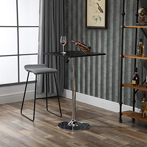 HOMCOM Tavolo Quadrato Regolabile in Altezza, Metallo e MDF, Tavolino da Bar, Cucina, Soggiorno, Nero, 60x60x82-103cm