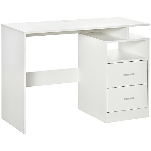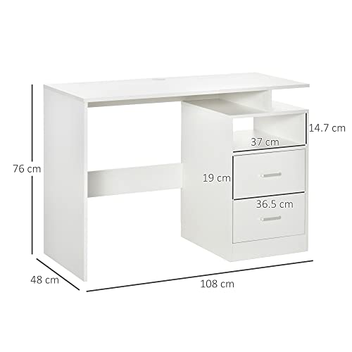 Homcom Tavolo Scrivania con Libreria Salvaspazio per Camera o Ufficio, Scrivania Moderna per Computer in Legno, 108x48x76cm, Bianco