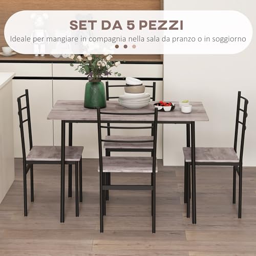 SET 5 PEZZI: Questo pratico set da pranzo comprende un tavolo rettangolare con 4 sedie per mangiare e conversare in compagnia.