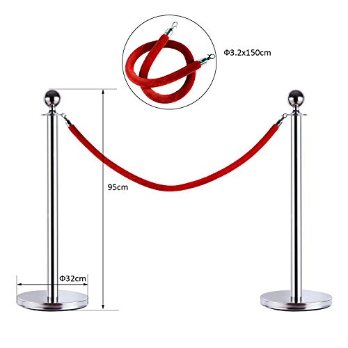 Homcom Transenne Elimina Separacode Paletti di Delimitazione con Corde Rosso Acciaio Inox Ф32 x 95CM