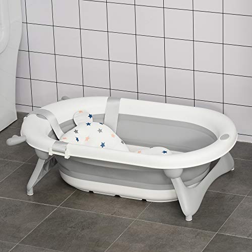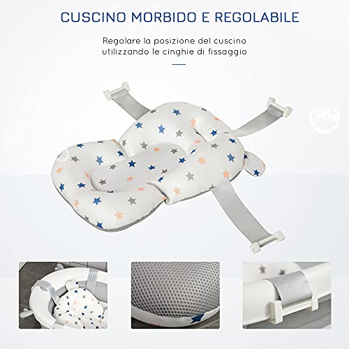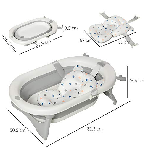 HOMCOM Vaschetta Bagnetto Pieghevole per Bambini 0-3 Anni con Indicatore di Temperatura e Cuscino, 81.5x50.5x23.5cm, Bianco