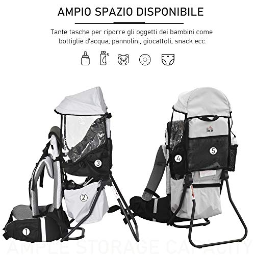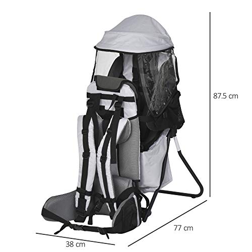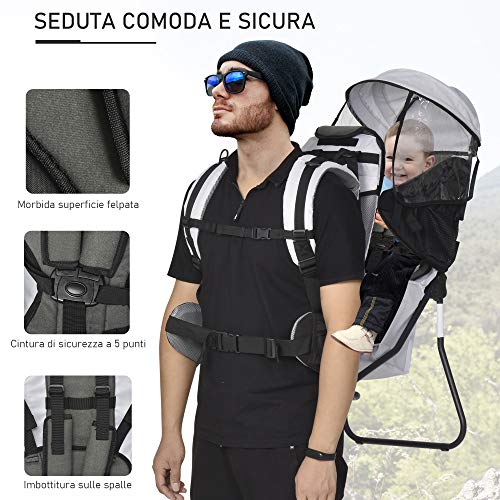 HOMCOM Zaino Porta Bimbo per Trekking, Pieghevole, Impermeabile e con Tettuccio Rimovibile 38x77x87.5cm, Grigio