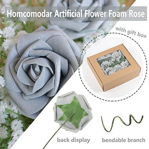 Homcomodar Artificiale Fiori Rosa 50pc Aspetto Reale Rose finte con Stelo per Nozze Fai da Te mazzi centrotavola Preparativi Festa Casa décor