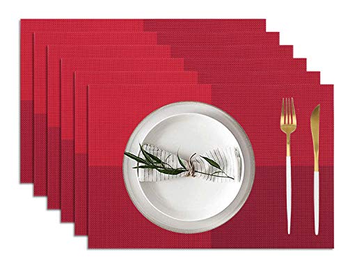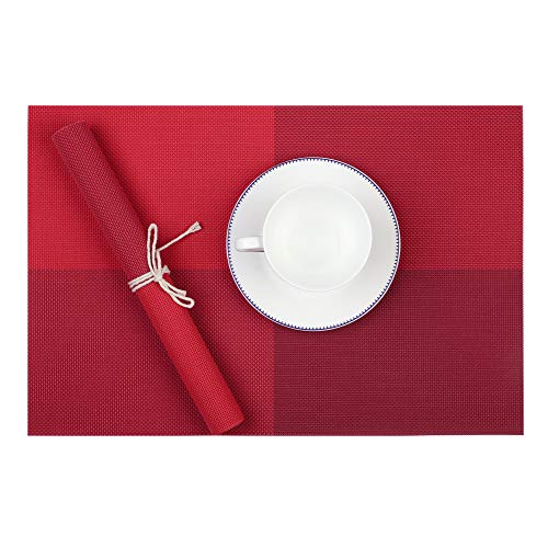 Homcomodar Tovagliette all'Americana PVC Tovagliette Da Tavola Resistenti al Calore Tovagliette in Vinile set da 6(Rosso)
