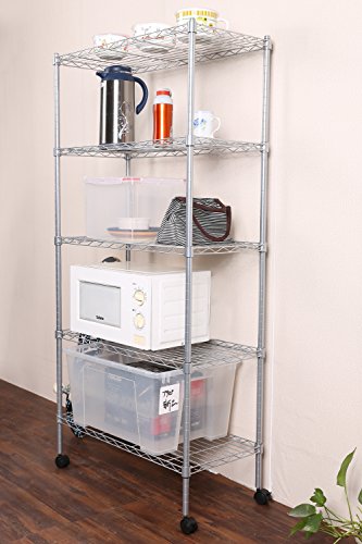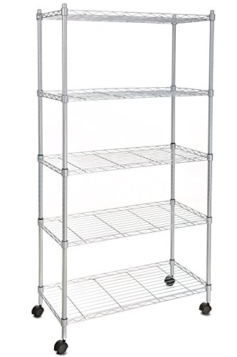 Homdox, scaffale su ruote con 5 ripiani in filo metallico, 73,7 x 35,6 x 154,9 cm, organizer portaoggetti con ripiani resistenti 5 Tier Silver Silver