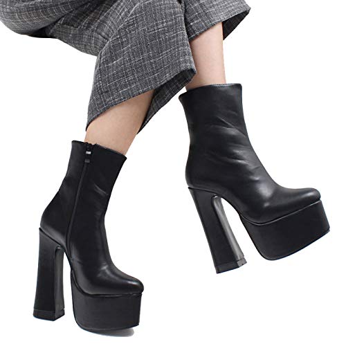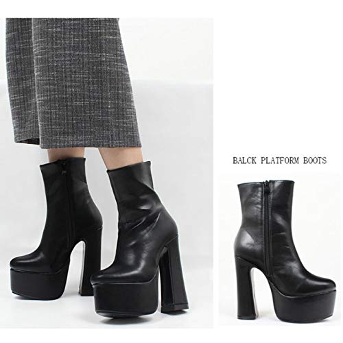 HOMDREAM Tacchi Donna Tacchi Alti 15 Cm Stivali con Plateau Gotico Stivaletti con Tacco Alto E Tacco Grosso Scarpe Punk con Punta A Punta,Black-37