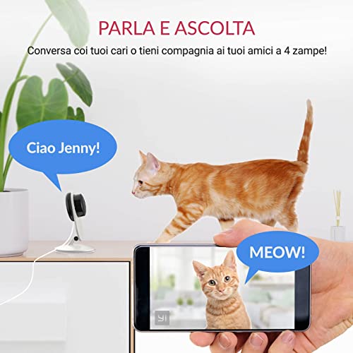 RISOLUZIONE IN FULL HD CON ECCELLENTE VISIONE NOTTURNA: - Video con risoluzione 1920 x 1080p (Full HD) - Lente grandangolo con zoom digitale 4x - le LED infrarossi non visibili al buio per eccellente visione notturna non invasiva - Luce LED di stato disattivabile via app (ideale per l'utilizzo durante il sonno)-Connesione tramite 2.4Ghz WIFI.