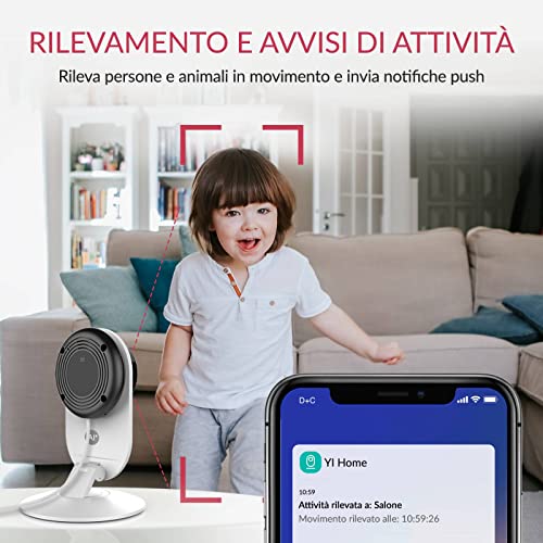 YI Home Camera 1080p Kit da 2, IP Camera WiFi,Telecamera Interno di Sorveglianza con Rilevamento di Movimento,Notifiche Push,Audio Bidirezionale,Visione Notturna,Smart Videocamera per telefono,laptop